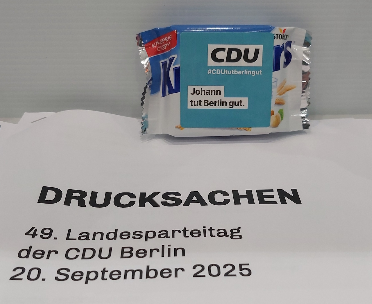 Foto mit dem Regierenden Bürgermeister von Berlin, Herr Kai Wegner auf dem Landesparteitag am 20.Sept.2025 im Gasometer Schöneberg, mit den Delegierten aus Mitte.